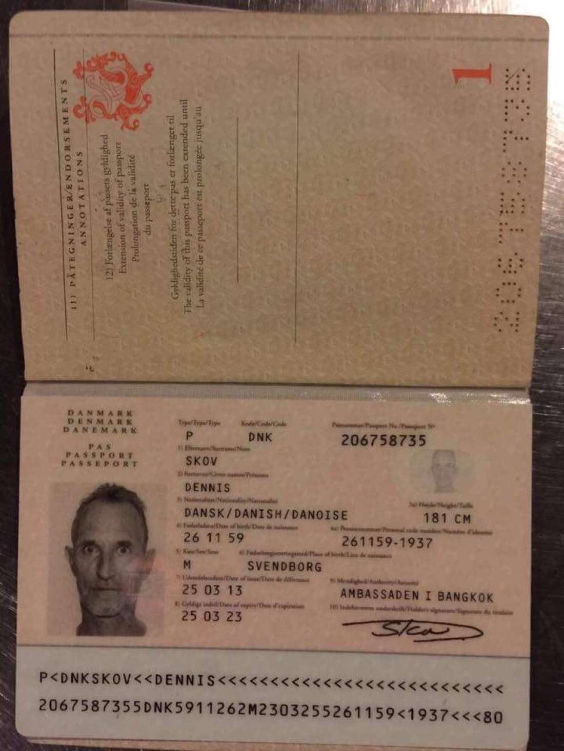 ជនបរទេសដេកស្លាប់ខាងលើមានឈ្មោះ SKOV DENNIS ភេទប្រុសកើតថ្ងៃទី២៦ខែ១១ឆ្នាំ១៩៥៩ សញ្ជាតិ ដាណឺម៉ាក កាន់លិខិតឆ្លងដែនលេខ ២០៦៧៥៨៧៣៥ មានសុពលភាពថ្ងៃទី២៥ខែ៣ឆ្នាំ២០២៣ ទិដ្ឋាការលេខ EI ០០៧៣៥០៨១ មានសុពលភាពថ្ងៃទី១ខែ៧ឆ្នាំ២០១៦។