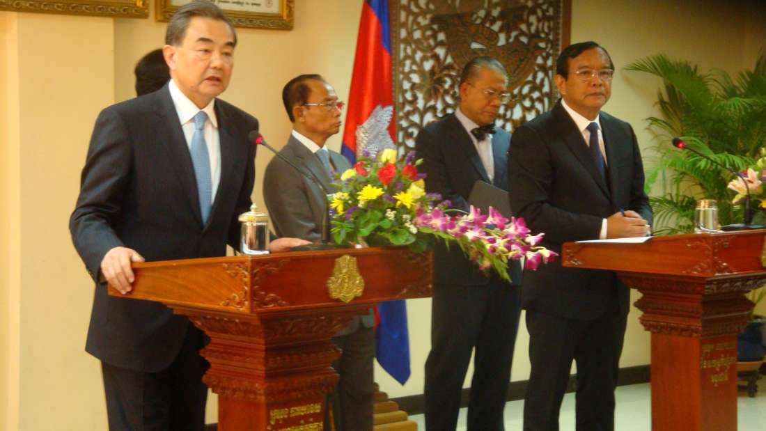 រាជធានីភ្នំពេញ៖ រដ្ឋមន្រ្តីការបរទេស កម្ពុជា ចិនបានបានថ្លែងនៅក្នុងសន្និសីទកាសែតរួមគ្នាកាលពីថ្ងៃទី២២ខែមេសាឆ្នាំ២០១៦នៅទីស្តីការក្រសួងការបរទេសថាក្នុងជំនួបជាង២ម៉ោងរវាងលោកប្រាក់ សុខុន រដ្ឋមន្រ្តីក្រសួងការបរទេសកម្ពុជានិងលោកវ៉ាង យីរដ្ឋមន្រ្តីការបរទេសចិនភាគីទាំងពីរបានពិភាក្សាគ្នាយ៉ាងស៊ីជម្រៅលើកិច្ចសហប្រតិបត្តិការទ្វេភាគីនិងកិច្ចសហប្រតិបត្តិការក្នុងតំបន់។
