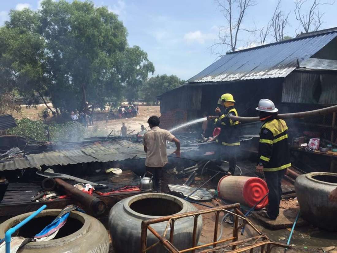 ខេត្តព្រះសីហនុ ៖ ផ្ទះប្រជាពលរដ្ឋប្រកបរបររកស៊ីលក់សាំង ៣ខ្នងផ្ទះតូចៗផ្ទាល់ដីសង់ឡើងពីប្រក់សង្គ័សី ត្រូវអគ្គីភ័យឆាបឆេះឡេបត្របាក់គ្មានសល់ រួមជាមួយទ្រព្យសម្បត្តិមួយចំនួនធំ កាលពីវេលាម៉ោង១០ និង ០០នាទីព្រឹកថ្ងៃទី២០ ខែឧសភា ឆ្នាំ២០១៦ នៅចំណុចចុងឆ្នេរអូរឈើទាល ស្ថិតនៅភូមិ4 សង្កាត់4 ក្រុងព្រះសីហនុ ។
