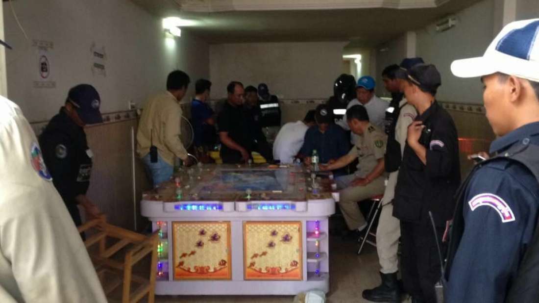 រាជធានីភ្នំពេញ៖ គណៈបញ្ជាការឯកភាពខណ្ឌឫស្សីកែវ បានសហការជាមួយនឹងកម្លាំងសមត្ថកិច្ចខណ្ឌឫស្សីកែវ បានធ្វើការចុះបង្ក្រាបទីតាំងហ្គេមបាញ់ត្រីមួយកន្លែង កាលពីវេលាម៉ោង ៣និង៣០នាទីរសៀល ថ្ងៃទី២១ ខែឧសភា ឆ្នាំ២០១៦ ស្ថិតនៅចំណុចផ្ទះលេខ ៥៣៤B ផ្លូវជាតិលេខ៥ ភូមិស្ពានខ្ពស់ សង្កាត់គីឡូម៉ែត្រលេខ៦ ខណ្ឌឫស្សីកែវ (ទល់មុខរោងចក្រ ៣ជាន់) ។