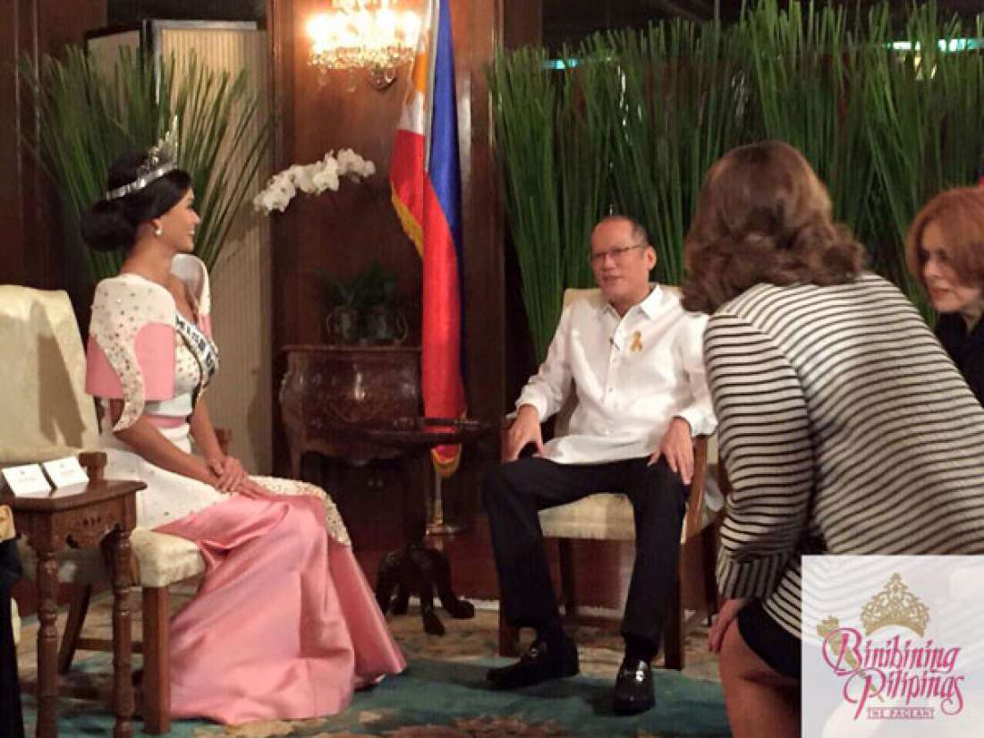 នៅក្នុងព្រិត្តិការណ៏ ក្នុងការលើកតំកើងអ្នកដែលមានស្នាដៃ ជួយឲ្យប្រទេសជាតិកាន់តែមានមុខមាន ដែលបានរៀបចំឡើងនៅទីក្រុង Quezon កាលពីថ្ងៃទី២៩ ខែមករា កន្លងមក បវរកញ្ញាចក្រវាឡហ្វីលីពីន បានលាតត្រដាងពីជំនួបជាមួយប្រធានាធិបតី Benigno Aquino III កាលពី២ថ្ងៃមុននេះ។