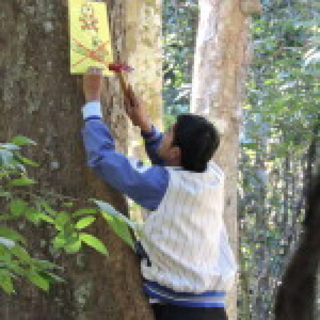 នេះជាប្រវត្តិសាស្ត្រមួយថ្មី របស់សហគមន៍ព្រៃឡង់បាននាំគ្នាបោះផ្លាកសញ្ញាហាមឃាត់រណាយន្តនៅតាមដើមឈើ ដើម្បីបង្ហាញអំពីបំរាមកាប់ដើមឈើ ជាពិសេសដើមជ័រច្បោះ ដែលជាប្រភពចំណូលរបស់សហគមន៍។ បំរាមនេះបង្ហាញពីការគ្រោះថ្នាក់ដល់អ្នកកាប់ឈើ ពីព្រោះបាត់បង់ដើមឈើ ក៍បណ្តាលឲ្យជីវិតមនុស្សក៏ពិបាកក្នុងការរស់នៅផងដែរ។