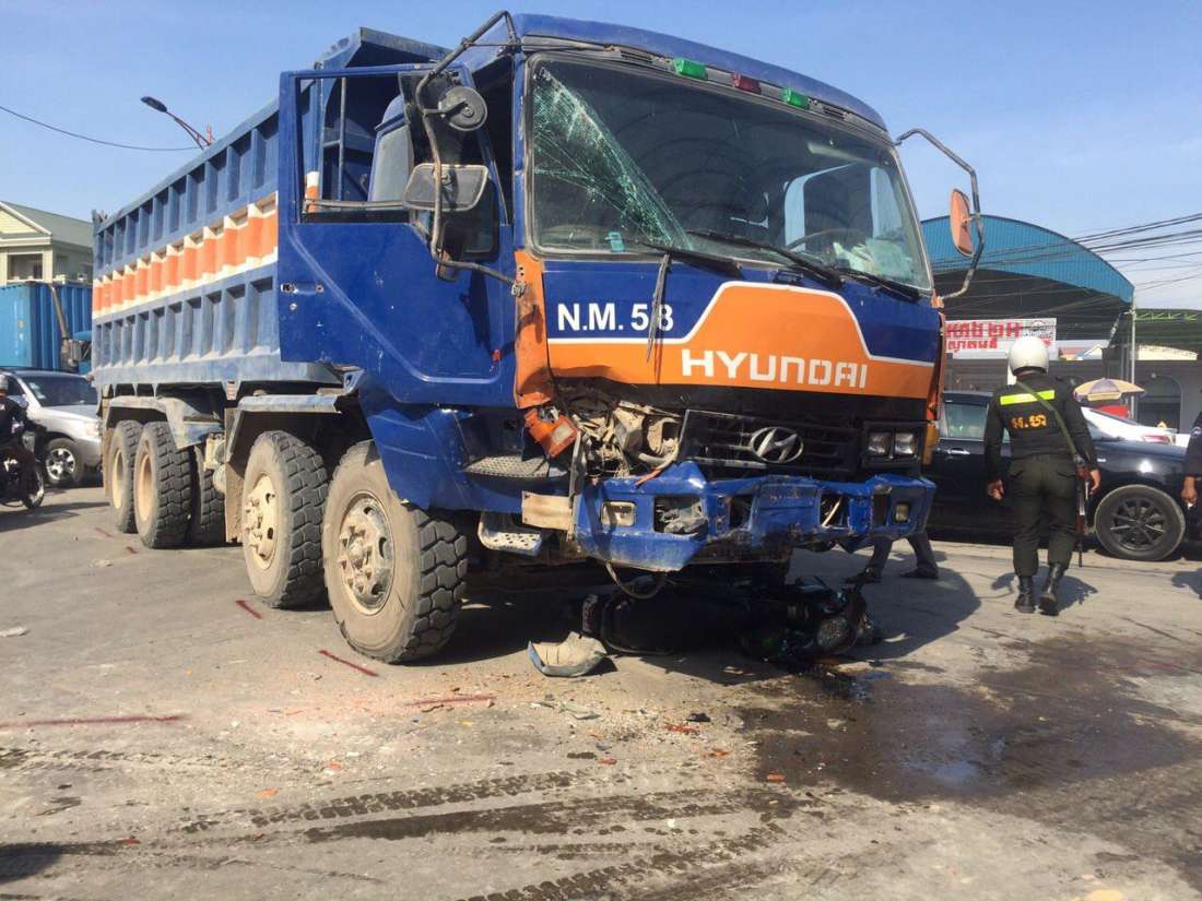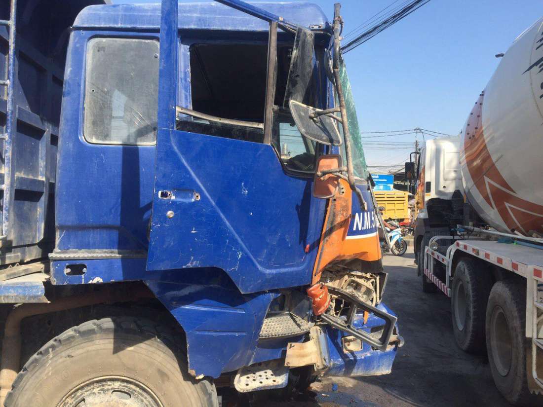 រាជធានីភ្នំពេញ ៖ នៅវេលាម៉ោង ៨ និង ៣០នាទីព្រឹកថ្ងៃទី០៤ ខែមករា ឆ្នាំ២០១៦នេះ មានករណីគ្រោះថ្នាក់ចរាចរណ៍មួយបង្កឡើងដោយសារ រថយន្តដឹកថ្មធុនធំមួយគ្រឿង របស់ក្រុមហ៊ុន ណឹមម៉េង បើកក្នុងល្បឿនលឿនមិនប្រយ័ត្នជ្រុលបុករះម៉ូតូ៣គ្រឿង រួចជ្រុលបុកផ្ទប់រថយន្តក្រឡុកស៊ីម៉ង់មួយគ្រឿងទៀត បណ្តាលអោយម៉ូតូមួយគ្រឿងត្រូវគៀបជាប់ក្រោមរថយន្ត និង២គ្រឿង រួមទាំងរថយន្តក្រឡុងស៊ីម៉ង់ត្រូវរងការខូចខាត តែសំណាងល្អមិនមានអ្នករងរបួស ។ ហេតុការណ៍នេះកើតឡើងនៅតាមបណ្តោយផ្លូវព្រះមុន្នីរ៉េត ២១៧ ច្រកចូលទៅទីលានចាក់សម្រាមចាស់ ក្នុងសង្កាត់ស្ទឹងមានជ័យ ខណ្ឌមានជ័យ រាជធានីភ្នំពេញ ។