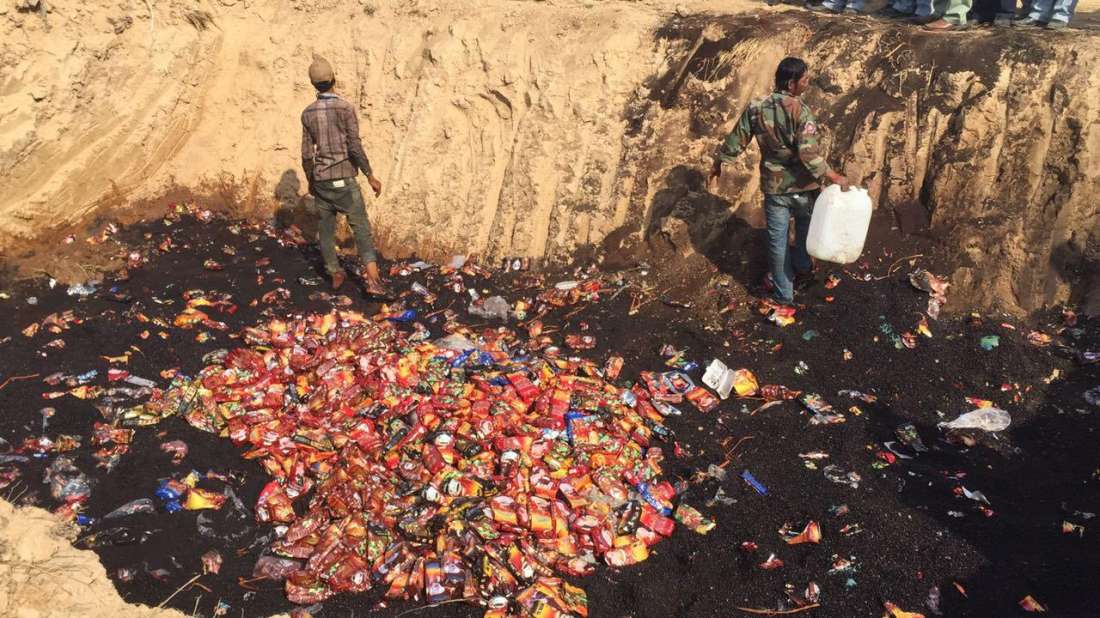 ភ្នំពេញ ៖ កាហ្វេបន្លំស្លាកសញ្ញាគុណភាព ចំនួន២២០៨០គីឡូក្រាម ដែលបង្កការភាន់ច្រលំដល់ប្រជាជននាំគ្នាទិញមកចរាចរលក់បន្ត ក៏ដូចជាយកមកបរិភោគ បង្កផលប៉ះពាល់ដល់សុខុមាលភាពប្រជាជន ត្រូវបានសមត្ថកិច្ច នៃ នាយកដ្ឋានប្រឆាំងបទល្មើសសេដ្ឋកិច្ចក្រសួងមហាផ្ទៃសហការជាមួយ មន្ត្រីកាំកុងត្រូល នៅ ព្រឹកថ្ងៃទី០៥ ខែកុម្ភៈ ឆ្នាំ២០១៦ បាន ធ្វើការដុតកំទេចោល បន្ទាប់ពីសមត្ថកិច្ចធ្វើការបង្ក្រាបបានកន្លងមកក្នុងភូមិសាស្ត្ររាជធានីភ្នំពេញ ។ការដុតបំផ្លាញនៅព្រឹកថ្ងៃខែដដែលនេះ ធ្វើឡើងក្រោមវត្តមានលោកឧត្តមសេនីយ៍ឯក ចាន់ វ៉ាន់ធឿន ប្រធាននាយកដ្ឋានប្រឆាំងបទល្មើស សេដ្ឋកិច្ចក្រសួងមហាផ្ទៃ លោក លឿង រដ្ឋា ប្រធាននាយកដ្ឋានដោះស្រាយវិវាទ និងគោលនយោបាយទូទៅនៃអគ្គនាយកដ្ឋានកាំកុងត្រូលនឹង លោកឧត្តមសេនីយ៍ត្រី ឡុង ស្រេង អនុប្រធាននាយក ដ្ឋានប្រឆាំងបទល្មើសសេដ្ឋកិច្ចក្រសួងមហាផ្ទៃ នៅទីលានចាក់សំរាមជើងឯក ស្ថិតក្នុងសង្កាត់ជើងឯក ខណ្ឌដង្កោ ។