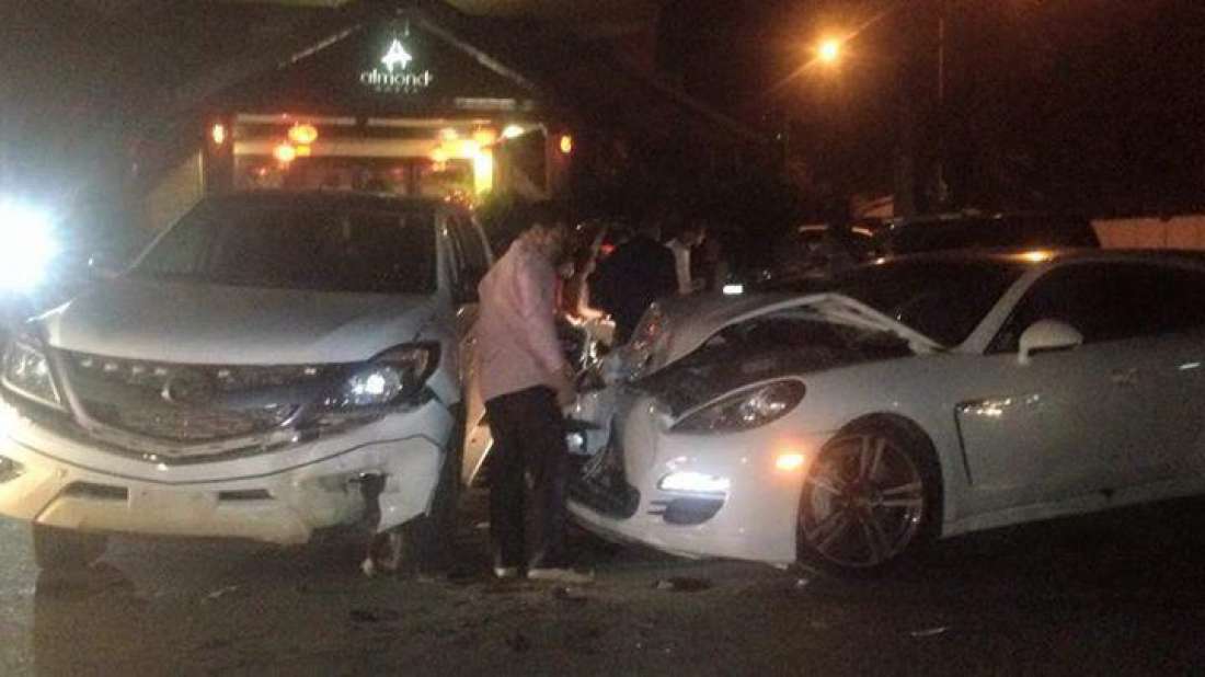 យោងតាមប្រភពព័ត៌មានពីសាក្សីដែលបានឃើញហេតុការណ៏នៃគ្រោះថ្នាក់នេះបានអោយដឹងថា នៅមុនពេលកើតហេតុគេបានឃើញបុរសស្រវឹងម្នាក់បើកររថយន្តមួយគ្រឿងម៉ាកPORSCHE ពណ៍សរពាក់ស្លាកលេខ ភ្នំពេញ2Z-2555បើកចេញពីផ្លូវម្តុំទំនាក់ទំនងព្រឹទ្ធសភាក្នុងទិសដៅពីកើតមកលិចដោយល្បឿនយ៉ាងលឿនឡើងមកផ្លូវសុធារស់ហើយបានបត់ស្ដាំដោយមិនប្រយ័ត្នក៏ជ្រុលទៅបុករថយន្ដ មួយគ្រឿងទៀតម៉ាកMasdaពណ៍សរ ពាក់ស្លាកលេខ ភ្នំពេញ2AC-2592ដែលធ្វើដំណើរបញ្រ្ចាស់ទិសគ្នាបណ្ដាលអោយរថយន្ដMasdaវិលមួយជុំនិងធ្វើអោយរថយន្តទាំងពីរគ្រឿងរងការខូចខាត ធ្ងន់ធ្ងរដូចគ្នាតែមិនបណ្ដាលអោយអ្នកបើកបរទាំងពីរនោះរងរបួសទេ។