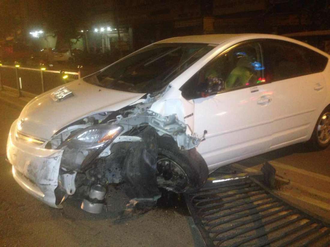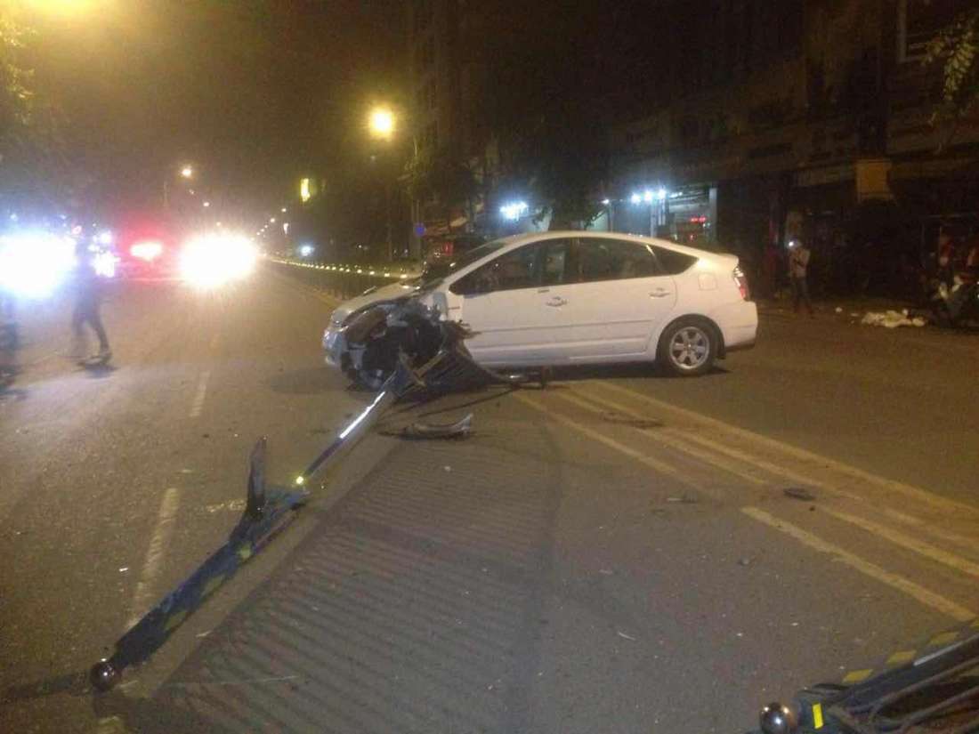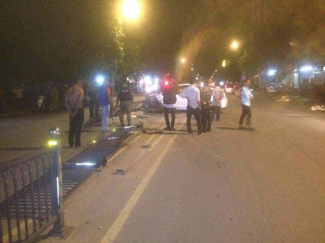 រាជធានីភ្នំពេញ៖ រនាំងដែកពុះចែកទ្រូងផ្លូវបានដាច់បាក់រៀបដល់ដីអស់ចំនួន8ផ្ទាំង ដោយសារតែរថយន្តបង្កម៉ាកព្រូសបើកលឿន ក៏បានដាច់កាឡែកង់មុខជ្រុលចង្កូតទៅបុករះ ហើយរថយន្តបង្កក៏រងការខូចខាតផងដែរ។ ហេតុការណ៍នេះបានកើតឡើងកាលពីវេលាម៉ោង៣និង១០នាទីជិតភ្លឺ ឈានចូលថ្ងៃទី១២ ខែសីហា ឆ្នាំ២០១៦ នៅខាងត្បួងស្ទុបពេទ្យចិនប្រហែល២០០ម៉ែត្រ តាមបណ្ដោយផ្លូវព្រះមុនីវង្ស ស្ថិតក្នុងសង្កាត់បឹងកេងកង២ ខណ្ឌចំការមន។
