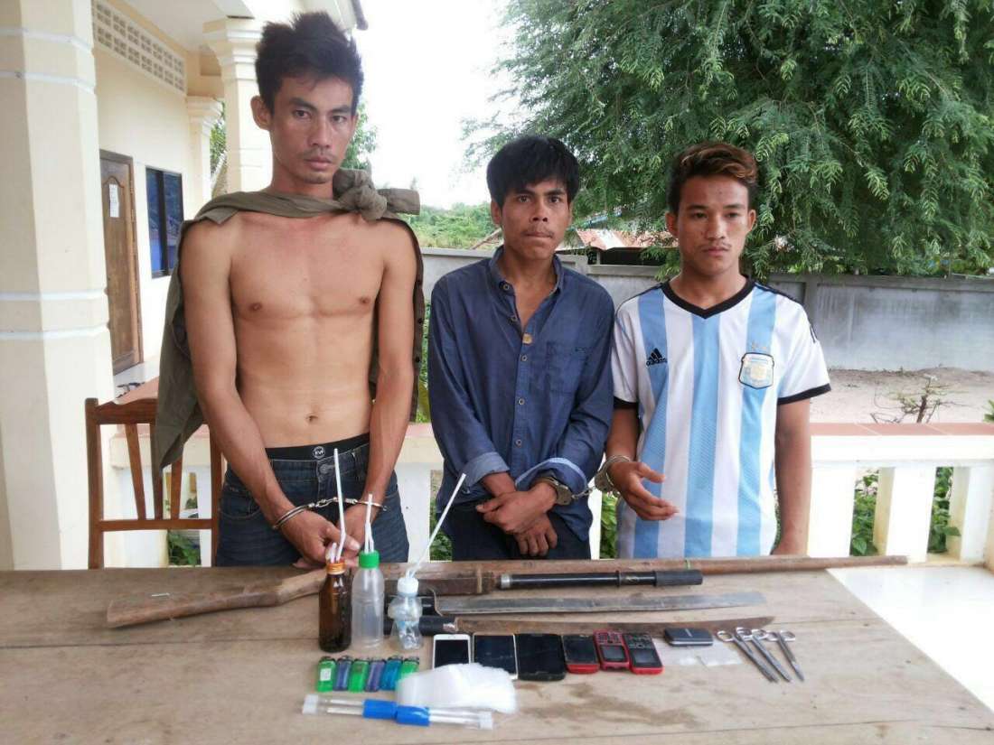 ខេត្តបាត់ដំបង៖ នៅវេលាម៉ោង១៥ និង៣០នាទី ថ្ងៃទី១៦ ខែសីហា ឆ្នាំ២០១៦ កម្លាំងមូលដ្ឋានកងរាជអាវុធហត្ថស្រុកបាណន់ បានធ្វើការឃាត់ខ្លួនជនសង្ស័យចំនួន៣នាក់ ពាក់ព័ន្ធករណីប្រើប្រាស់និងចែកចាយនូវសារធាតុញៀន ស្ថិតនៅចំណុចភូមិភូមិព្រះស្រែ ឃុំស្នឹង ស្រុកបាណន់ ខេត្តបាត់ដំបង។