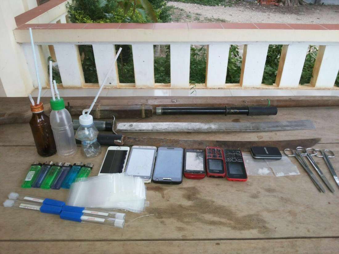 មន្ត្រីកងរាជអាវុធហត្ថដដែលក៏បានឲ្យដឹងទៀតថា កម្លាំងបានធ្វើការចាប់យកវត្ថុតាងមួយចំនួនពីជនសង្ស័យរួមមាន១. ថ្នាំញៀនប្រភេទមេតំហ្វេតាមីនទឹកកក ចំនួន៤កញ្ចប់ ដែលមានទម្ងន់ ស្មើ២.២៨ក្រាម ២. ម៉ូតូចំនួន ១គ្រឿង ៣. ទូរស័ព្ទដៃ ចំនួន៦គ្រឿង ៤. ជញ្ជីងសំរាប់ថ្លឹង ១គ្រឿង ៥. អាវុធកែច្នៃចំនួន ១ដើម ៦. ដាវចំនួន ២ដើម ៧. ឧបករណ៍សំរាប់វិចខ្ចប់ និងសំរាប់សេពមួយចំនួន។