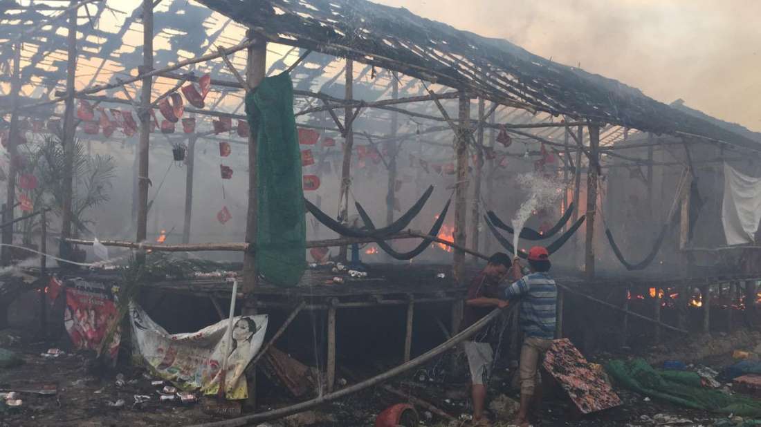 រាជធានីភ្នំពេញ ៖ នៅវេលាម៉ោង ១៨ និង ២០នាទីល្ងាចថ្ងៃទី០៩ ខែមករា ឆ្នាំ២០១៦ មានគ្រោះអគ្គីភ័យមួយបានឡេបត្របាក់ទីតាំងហាង លក់ត្នោតជូរ និងគ្រឿងផឹកស៊ី ២ទីតាំង ដែលសង់ឡើងពីឈើប្រក់ស្បូវ យ៉ាងខ្លាំងខ្លា បណ្តាលអោយតូបទាំង២ត្រូវ អណ្តាតភ្លើងឆាបឆេះហ្មត់គ្មានសល់ ។ ហេតុការណ៍នេះកើតឡើងនៅចំណុច ផ្លូវប៉េតុងមួយកន្លែង ក្បែររបងរោងចក្រកាណាឌីយ៉ា ស្ថិតក្នុងសង្កាត់ចោមចៅ ខណ្ឌពោធិ៍សែនជ័យ ។