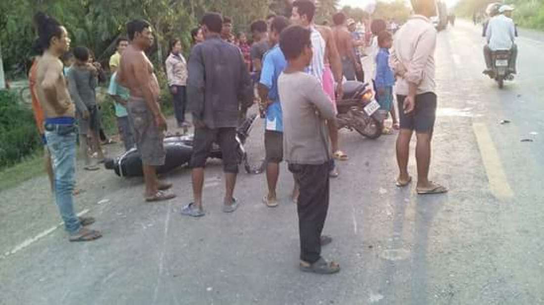 ករណីគ្រោះថ្នាក់ចរាចរណ៏រវាងម៉ូតូនិងម៉ូតូ២គ្រឿងនៅស្រុកសំពៅលូន ខេត្តបាត់ដំបង បណ្តាលឲ្យមបុស្ស៦នាក់រងរបួសធ្ងន់និងស្រាលរងរបួសស្រី៣នាក់និងប្រុស៣នាក់១ ជួន សុខភេទប្រុសអាយុ ៣៥ ឆ្នាំ២ ឆុយ សុភា ភេទ ស្រីអាយុ ១៨ ឆ្នាំ នាក់ទាំងពីររស់នៅភូមិថ្នល់ដាច់ ឃុំព្រះខែ ស្រុកបសេដ្ឋ ខេត្តកំពង់ស្ពឺ ៕