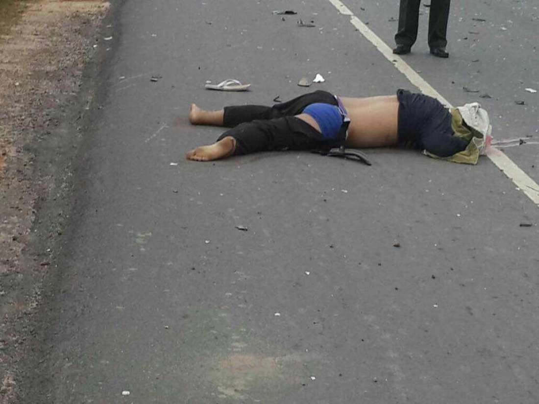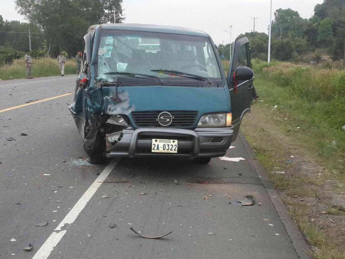 ខេត្តព្រះសីហនុ ៖ បុរសម្នាក់បានបានស្លាប់ បាត់បង់ជីវិតភ្លាមៗនៅហ្នឹងកន្លែង បន្ទាប់ពីរូបខ្លួនជិះម៉ូតូមួយគ្រឿងម៉ាក វីវ៉ា ជ្រុលបុកពីមុខពេញទំហឹងជាមួយរថយន្តសាំយ៉ុង១២កៅអី នាវេលាម៉ោង ៦ និង៣០នាទីថ្ងៃទី១២ ខែធ្នូ ឆ្នាំ២០១៦នេះ ស្ថិតលើផ្លូវជាតិលេខ៤ ចន្លោះគីឡូម៉ែត្រលេខ ២១២ / ២១៣ ក្នុងភូមិពូធឿង ឃុំបិតត្រាំង ស្រុកព្រៃនប់ ក្រុងព្រះសីហនុ ។