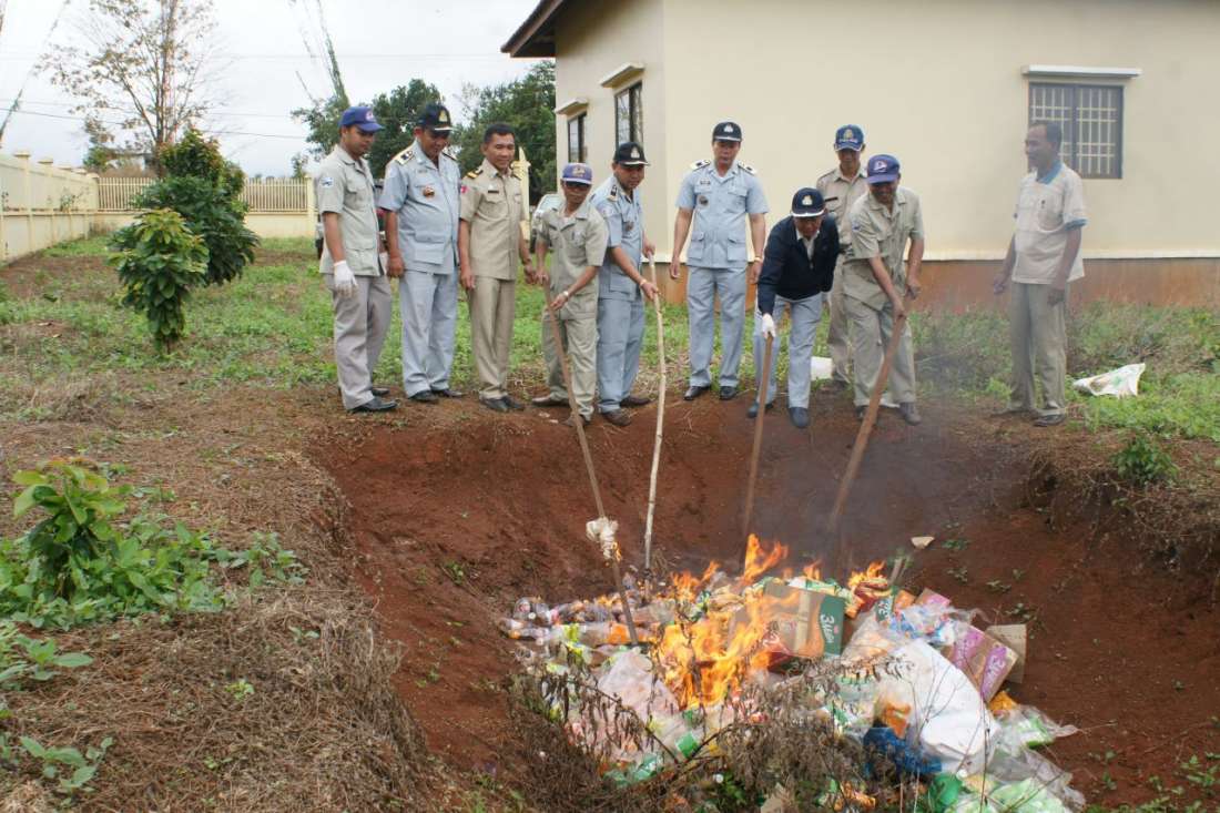 ខេត្តមណ្ឌលគិរី៖ មន្រ្តីសាខាកាំកុងត្រូលបាននិយាយថាទំនិញខូចគុណភាព និង ហួសកាលបរិច្ចេទនៃការប្រើប្រាស់ចំនួនជាង ២០០គីឡូក្រាម ត្រូវបាន មន្ត្រីសាខាកាំកុងត្រូលខេត្តមណ្ឌលគិរី សហការជាមួយមន្ទីរពាណិជ្ជកម្មខេត្ត និង នគរបាលប្រឆាំង បទល្មើសសេដ្ឋកិច្ចខេត្ត បានធ្វើការដកហូតយក មកកំទេចចោល នៅការិយាល័យពាណិជ្ជកម្ម ស្រុកពេជ្រាដា កាលពីព្រឹកថ្ងៃទី១៩ខែធ្នូ ឆ្នាំ២០១៦។