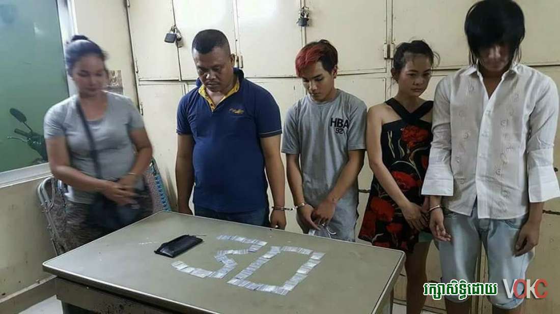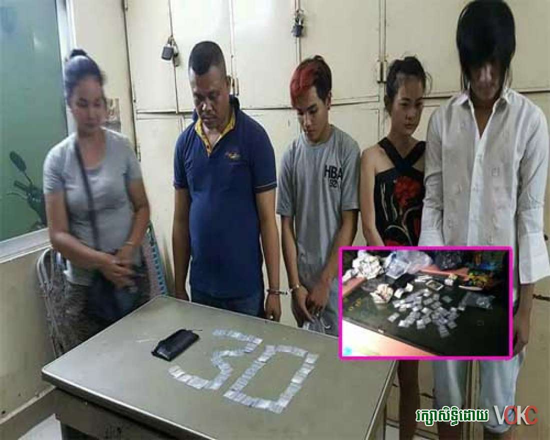 សមត្ថកិច្ចបន្តថា ជនសង្ស័យទាំង៥នាក់ មានទី១ឈ្មោះ សោម វីរៈ ភេទប្រុស អាយុ៣៦ឆ្នាំ មុខរបរមិនពិតប្រាដក ស្នាក់នៅផ្ទះជួលគ្មានលេខ ផ្លូវសុធារស ភូមិ១ សង្កាត់ទន្លេបាសាក់។ ទី២ឈ្មោះ លឹម ស៊ីណា ភេទស្រី អាយុ២៨ឆ្នាំ មុខរបរមិនពិតប្រាដក ស្នាក់នៅសង្កាត់ទឹកថ្លា ខណ្ឌសែនសុខ។ ទី៣ឈ្មោះ ម៉ុក រស្មីពេជ្រ ភេទប្រុស អាយុ២៤ឆ្នាំ មុខរបរមិនពិតប្រាដក ស្នាក់នៅសង្កាត់ចោមចៅ ខណ្ឌពោធិ៍សែនជ័យ។ ទី៤ឈ្មោះ ម៉ុច សុធារិន ភេទប្រុស អាយុ១៦ឆ្នាំ មុខរបរនៅផ្ទះ ស្នាក់នៅសង្កាត់ផ្សារថ្មី៣ ខណ្ឌដូងពេញ។ និងជនសង្ស័យទី៥ឈ្មោះ វុធ វណ្ណារី ភេទស្រី អាយុ៣៥ឆ្នាំ មុខរបរមើលហ្គេមឲ្យគេ បច្ចុប្បន្នស្នាក់នៅសង្កាត់ស្រះចក ខណ្ឌដូងពេញ។ វត្ថុតាងដែលសមត្ថកិច្ចដកហូត រួមមាន ម្សៅក្រាមពណ៌សថ្លា ចំនួន៣០កញ្ចប់តូច ទូហ្គេមបាញ់ត្រី១គ្រឿង លុយ១០០ដុល្លារ និង៥៨០០០០រៀល។