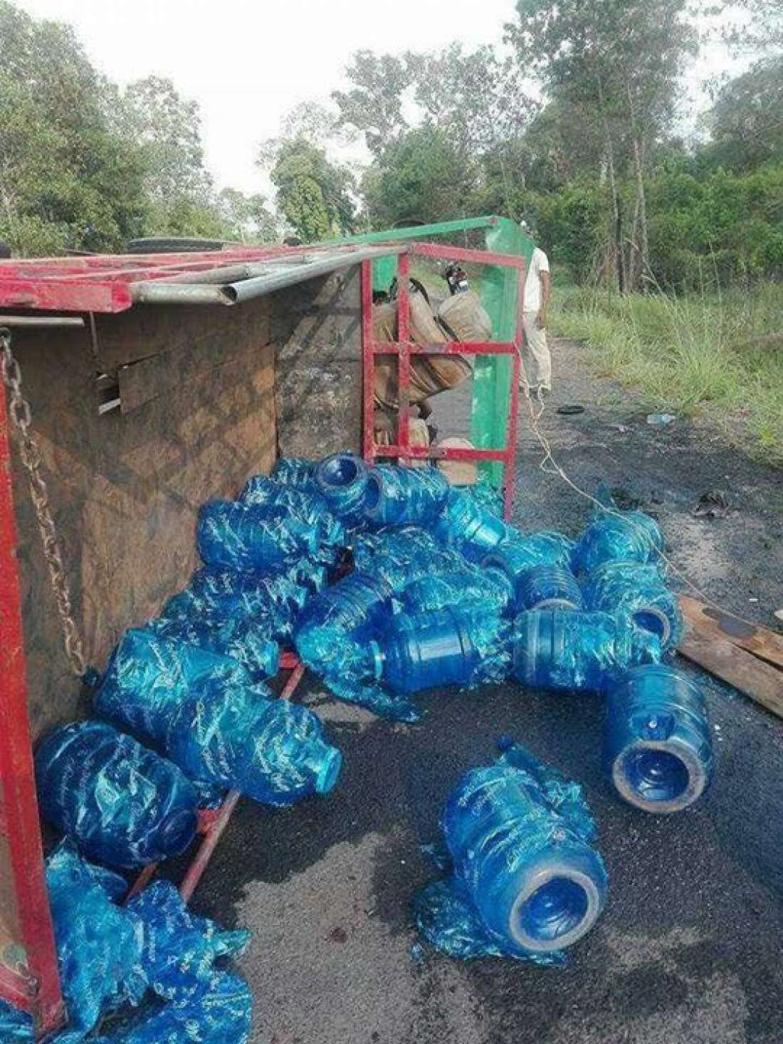 ប្រភពព័ត៌មានអោយដឹងថា រថយន្តកែច្នៃពាក់ស្លាកលេខ ព្រះវិហារ 6A0054 ដឹកទឹកសុទ្ធបោះឲ្យមូយតាមភូមិ បើកបរដោយជនរងគ្រោះទាំង២នាក់ ( មិនស្គាល់អត្តសញ្ញាណ ) តាមបណ្តោយផ្លូវខាងលើ ក្នុងល្បេឿនលេឿន លុះមកដល់ចំណុចកើតហេតុ ដែលជាចំណុចផ្លូវកោងខ្លាំង ក៏បានរេចង្កូតរថយន្តក្រឡាប់អូសជាង១០ម៉ែត្រ បណ្តាលអោយជនរងគ្រោះទាំង២ត្រូវរងរបួសធ្ងន់ ហូរឈាមស្រោចពេញដងខ្លួន ។ ភ្លាមនោះ ពួកគេត្រូវបានអ្នកជិតខាង ដឹកយកទៅសង្គ្រោះនៅមន្ទីរពេទ្យ ដោយឡែក រថយន្តត្រូវបានសមត្ថកិច្ចទំនាក់ទំនងទៅខាងក្រុមហ៊ុនទឹកសុទ្ធអោយមកទទួលយកទៅវិញ ។