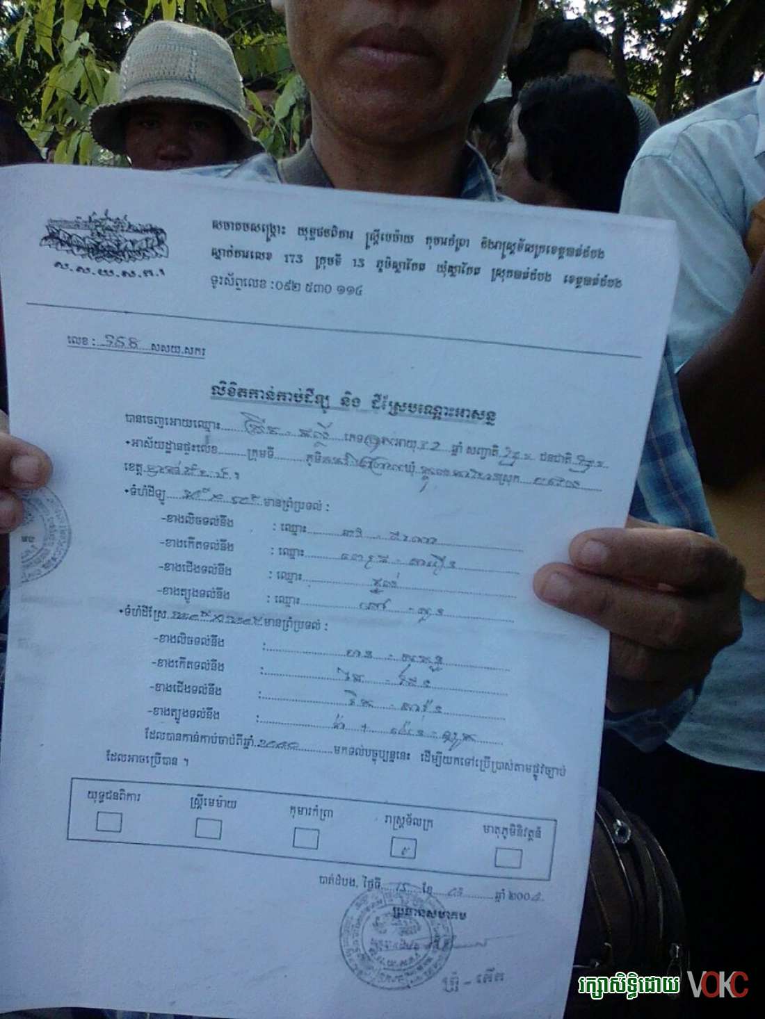 យោងតោមសំដីប្រជាពលរដ្ឋបាន រាប់រៀបប្រាប់អ្នកយកពត៍មានទាំងទឹកភ្នែកថា ដីនោះពួកគាត់បានរស់នៅអស់រយះពេល ១៧ ឆ្នាំ មកហើយក្នុងឆ្នាំ២០០០ ពួកគាត់កាប់ឆ្កាព្រៃតាំងមានគ្រាប់មីនគ្រប់បែបយ៉ាងនៅតំបន់នោះដែលជាកន្លែង សមភូមិក្តៅពួកគាត់បានផ្តូរជីវិតគ្រប់បែបយ៉ាងដើម្បីយកដីទាំងនោះមកបង្ករបង្កើនផលតែមកដល់ពេលនេះជាមានការរំលោភបំពានពីសំណាក់កងកម្លាំងយោធាទៅវិញ ។