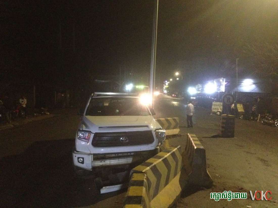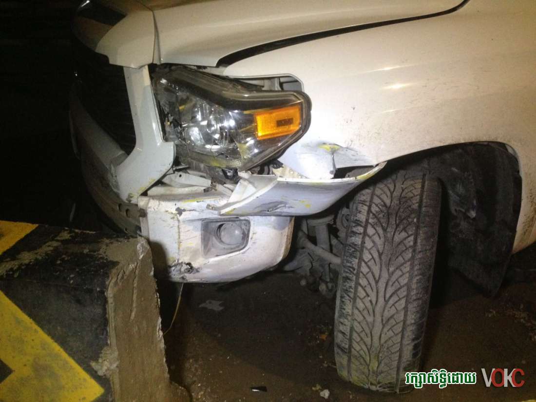 បើតាមប្រភពពីប្រជាពលរដ្ឋដែលឃើញហេតុការណ៍ខាងលើនេះបានប្រាប់ឲ្យដឹងថា មានបុរសម្នាក់សង្ស័យស្រវឹងស្រា បានបើករថយន្តទំនើបម៉ាកTUNDRA ពណ៌ស ដែលពាក់ស្លាកលេខ ខេមរៈភូមិ02 2-8168 ទៅបុកម៉ូតូtoday នៅត្រង់ចំណុចស្ទុបបូកគោ ក្នុងទឹកដីខណ្ឌចំការមន បណ្ដាលឲ្យរងការខូចខាតបន្តិចបន្ទួច ក៏ប៉ុន្តែរថយន្តបង្កខាងលើមិនព្រមឈប់ទទួលខុសត្រូវនោះទេគឺបានបន្តបើករត់មកបុកទ្រូងផ្លូវនៅត្រង់ចំណុចផ្លូវ២៧១ ស្ថិតក្នុងសង្កាត់ ចាក់អង្រែលើ ខណ្ឌមានជ័យបណ្ដាលឲ្យបាក់ចេញពីគ្នាអស់ចំនួន៥កង់រងកាថខូចខាតបន្ថែមទៀត ដោយរថយន្តបង្កបានរងការខូចខាតយ៉ាងដំណំ និងកល់ជាប់ជាមួយទ្រូងផ្លូវទៅមុខលេងរួច ។