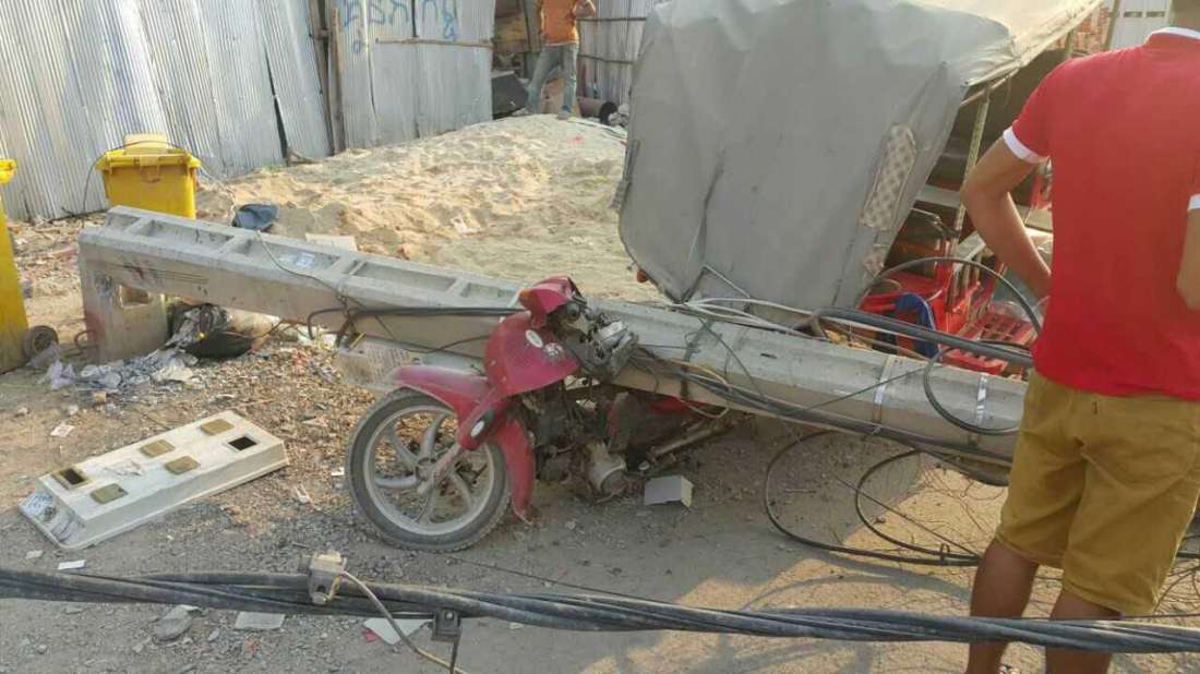 លោករស់ សុភ័ក្រ អភិបាល រងខណ្ឌច្បារអំពៅដែលចុះទៅពិនិត្យនៅកន្លែងកើតហេតុបានអោយដឹងថា ករណីនេះបាក់ នេះកើតឡើងដោយសារគ្រឿងចក្រកាយដីធ្វើផ្លូវជាតិលេខ១ ខ្វះការប្រុងប្រយ័ត្ន បណ្តាលអោយប្រម៉ោយអេស្កាវ៉ាទ័រទាក់ជាមួយខ្សែភ្លើងដែលតឆ្លងកាត់ផ្លូវទាញបង្គោលភ្លើងបាក់សង្កត់ទៅលើម៉ូតូរ៉ឺម៉កមួយគ្រឿង តែសំណាង ល្អម្ចាស់ម៉ូតូមិនមានគ្រោះថ្នាក់មិនមានគ្រោះថ្នាក់ឡើយ ពោលគឺដើរចេញទាន់ហើយក៍មិនបង្កគ្រោះថ្នាក់ដល់អ្នកដំណើរដែរ ។ មួយម៉ោងក្រោយ កើតហេតុខាងក្រុមហ៊ុនអគ្គីសនីបានមករៀបចំដាក់ដាំបង្គោលថ្មីជំនួសវិញ ហើយបង្គោលដែលបាក់នេះគ្រោងនិងចេញនៅឆាប់ៗខាងមុខនេះដែរដើម្បីបង្កលក្ខណៈងាយស្រួលដល់ការស្ថាបនាផ្លូវជាតិលេខ១ ។