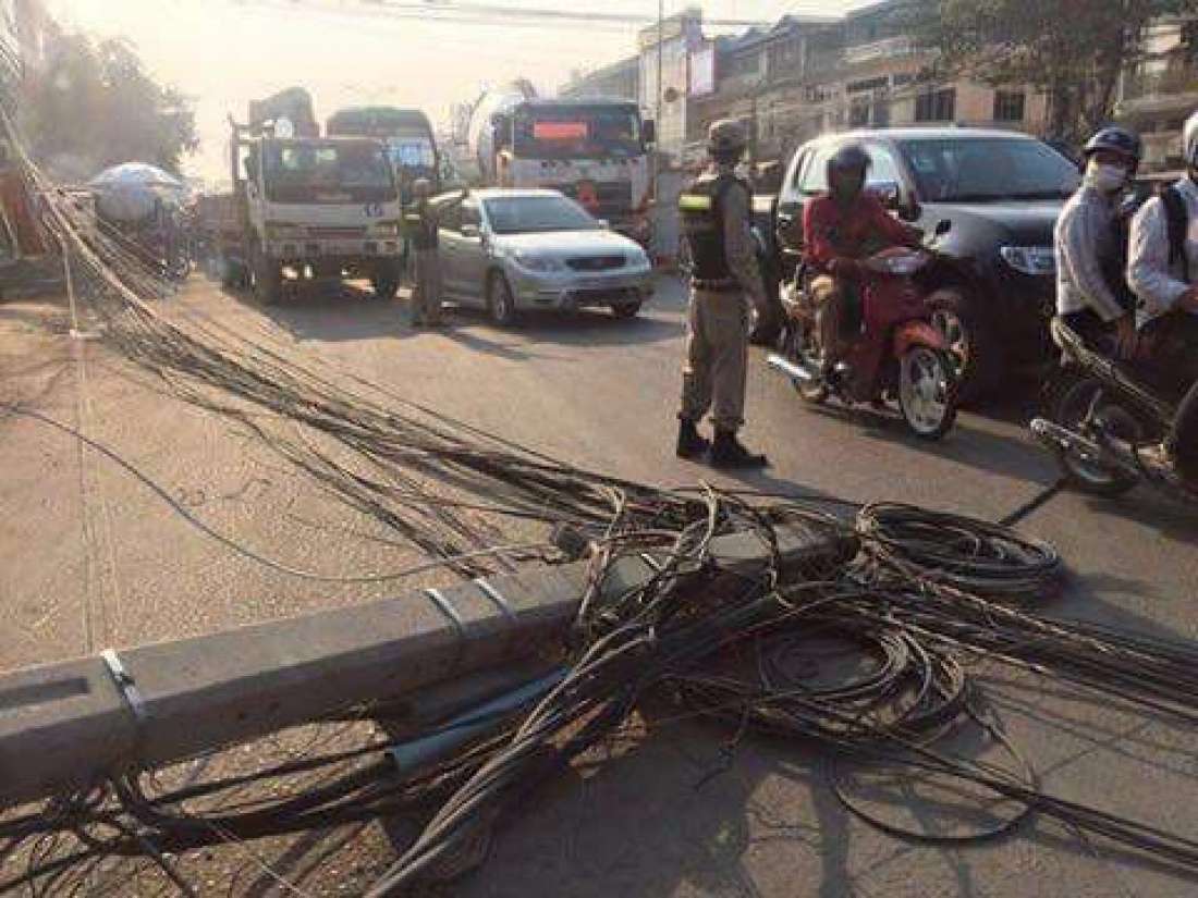 ភ្នំពេញ ៖ បង្គោលភ្លើងមួយ ដើមដែលហ៊ំព័ទ្ធទៅដោយខ្សែភ្លើងបានបាក់ត្រឹមគល់ដោយសារគ្រឿងចក្រកាយដីធ្វើផ្លូវជាតិលេខ១ លើកដៃឡើងលើ ខ្ពស់ពេក ពេលទម្លាក់មកវិញ ក៍ទាក់ជាមួយខ្សែភ្លើងបណ្តាលអោយទាញបង្គោលភ្លើងបាក់តែម្តង ។ ករណីបាក់បង្គោលខ្សែ ភ្លើងនេះបានកើតឡើងនៅវេលាម៉ោង៤,៤៥នាទីល្ងាចថ្ងៃទី៣ ខែមីនា ឆ្នាំ២០១៦ នៅចំនុចទល់មុខសាលាសង្កាត់ច្បារអំពៅទី២ ខណ្ឌច្បារ អំពៅ ។