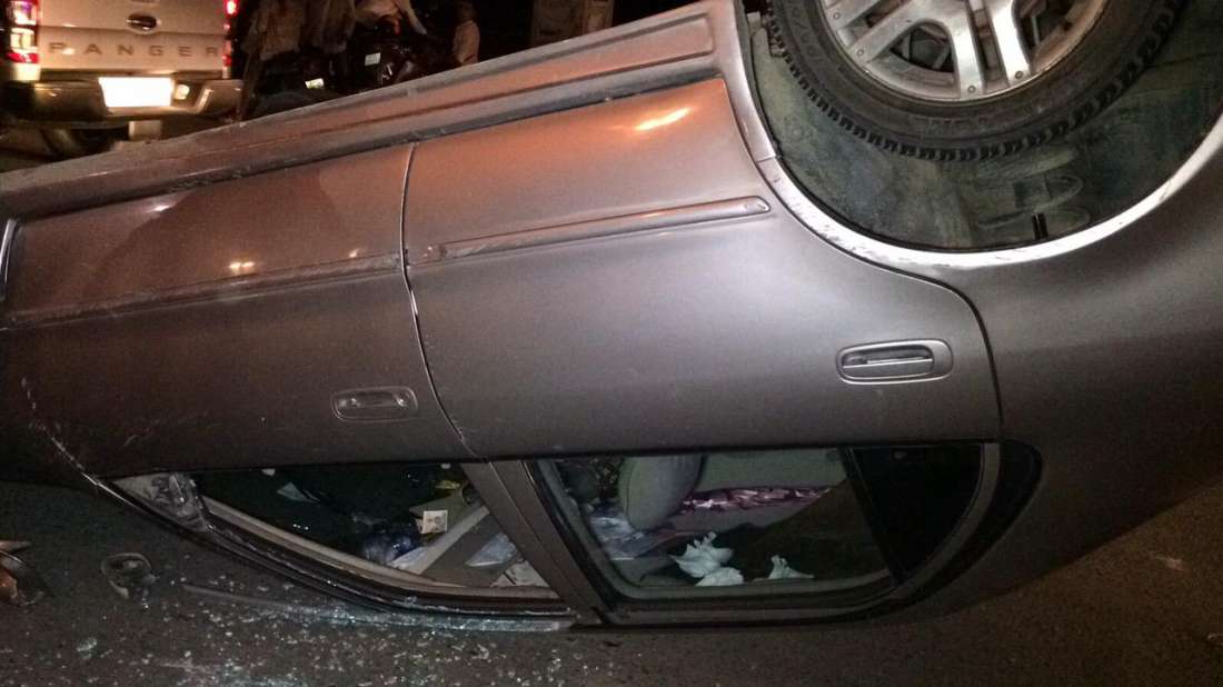 ភ្នំពេញ ៖ រថ យន្តកូរ៉ូឡាមួយគ្រឿង បានក្រឡាប់ផ្ញើរជើងច្រងាង បន្ទាប់ពីបើកលឿនមិនប្រយ័ត្នជ្រុលបុក រះរនាំងដែកពុះចែកទ្រូវផ្លូវពេញទំហឹង បណ្តាលអោយរនាំងដែកចំនួន ៥ផ្ទាំងត្រូវបាក់ទ្រេតរងការខូចខាត ចំណែករថយន្តនៅមិនទាន់អស់ល្បឿនក៏បានបួងចង្កូតបំណងបត់ត្រឡប់ក្រោយ ត្រូវក្រឡាប់ផ្ញារជើងច្រងាងតែម្តងទៅ ។ ហេតុការណ៍នេះកើតឡើងនៅតាមបណ្តោយផ្លូវសហព័ន្ធរុស្ស៊ី ទល់មុខនឹងព្រលានយន្តហោះអន្តរាជាតិភ្នំពេញ ក្នុងសង្កាត់កាកាប ខណ្ឌពោធិ៍សែនជ័យ កាលពីវេលាម៉ោង ២២ និង ០០នាទីយប់ថ្ងៃទី១៤ ខែមករា ឆ្នាំ២០១៥ ។