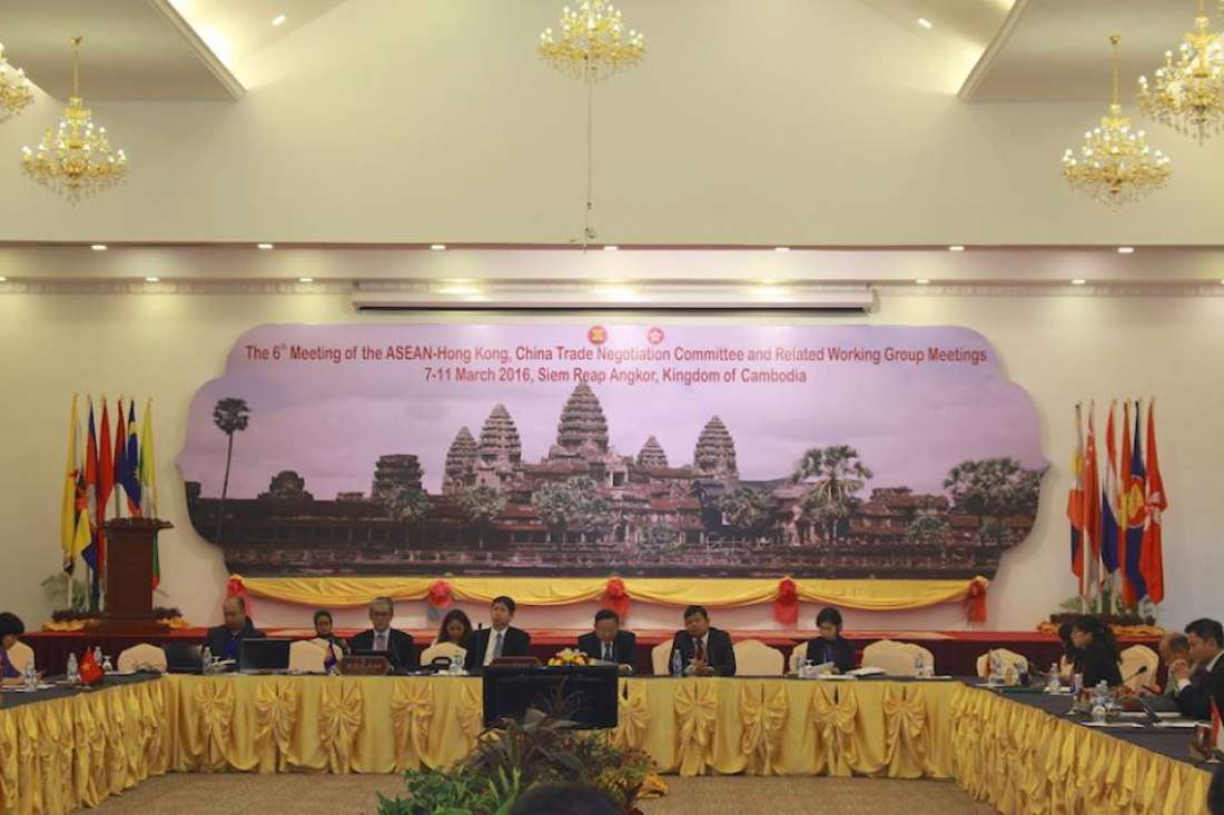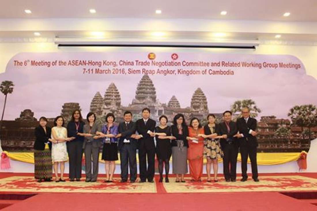 កិច្ចប្រជុំលើកទី៦នៃកិច្ចប្រជុំគណៈកម្មាធិការចរចាពាណិជ្ជកម្ម ស្តីពីកិច្ចព្រមព្រៀងពាណិជ្ជកម្មសេរីអាស៊ាន-ហុងកុង (AHKFTA-TNC) និងកិច្ចប្រជុំក្រុមការងារពាក់ព័ន្ធ ត្រូវបាន និងប្រព្រឹត្តទៅពីថ្ងៃទី៧ ដល់ ១១ ខែមីនា ឆ្នាំ២០១៦ នៅសណ្ឋាគារអប្សរាផាឡេសរីសត ទីក្រុងសៀមរាបព្រះរាជាណាចក្រកម្ពុជា។