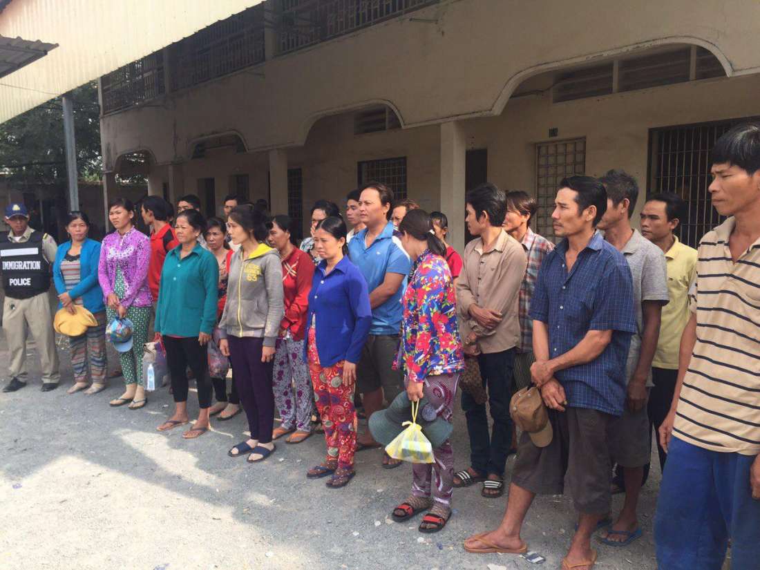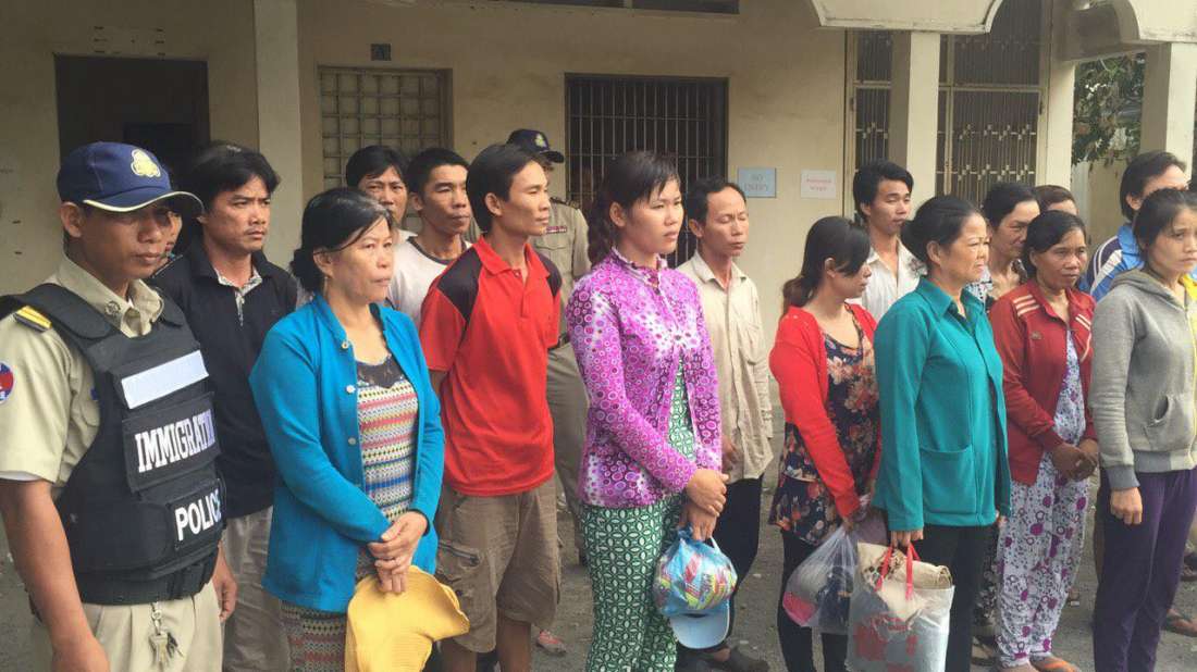 រាជធានីភ្នំពេញ ៖ នៅព្រឹកថ្ងៃទី១៥ ខែមករា ឆ្នាំ២០១៥នេះ អគ្គនាយកដ្ឋានអន្តោប្រវេសន៍ ក្រោមវត្តមានឧត្តមសេនីយ៍ទោអ៊ុក ហៃសីឡា បានធ្វើការបណ្តេញជនជាតិវៀតណាមដែលរស់នៅខុសច្បាប់នៅកម្ពុជា ចំនួន២៧នាក់ ស្រី១០នាក់ ទៅកាន់ប្រទេសតាមរបស់ខ្លួនវិញ តាមច្រកក្អមសំណរ ។ ដែលការបណ្តេញនេះធ្វើឡើងនៅក្នុងបរិវេណ នៃអគ្គនាយដ្ឋានអន្តោប្រវេសន៍ មានទីតាំងទល់មុខព្រលានយន្តហោះអន្តរជាតិភ្នំពេញ ក្នុងសង្កាត់កាកាប ខណ្ឌពោធិ៍សែនជ័យ ។ឯកឧត្តម ឧត្តមសេនីយ៍ទោអ៊ុក ហៃសីឡា ប្រធាននាយកដ្ឋាស៊ើបអង្គេត និងអនុវត្តនីតិវិធី នៃអគ្គនាយកដ្ឋានអន្តោប្រវេសន៍ បានមានប្រសាសន៍ អោយដឹងថា ជនទាំង ២៧នាក់នេះត្រូវបានកម្លាំងសមត្ថកិច្ចអន្តោបរវេសន៍ សហការជាមួយកម្លាំងនគរបាល នៃស្នងការខេត្តព្រះវិហារ ធ្វើការឃាត់ខ្លួនភ្លាមៗ នៅចំណុចឃុំស្រយ៉ង់ ស្រុកគូលេន ខេត្តព្រះវិហារ បន្ទាប់ពួកគេលួចចូលតាមច្រករបៀងមករស់នៅខុសច្បាប់ នៅក្នុងប្រទេសកម្ពុជា ។ ក្រោយការឃាត់ខ្លួនពួកគេ ត្រូវបញ្ចូនមកឃុំខ្លួននៅអគ្គនាយកដ្ឋានអន្តោប្រវេសន៍ជាង ២អាទិត្រមក ហើយ ទើបតែបណ្តេញចេញនៅព្រឹកថ្ងៃទី ១៥នេះ ក្រោយកសាងសំណុំបែបបទរួចរាល់ ។