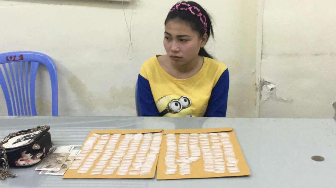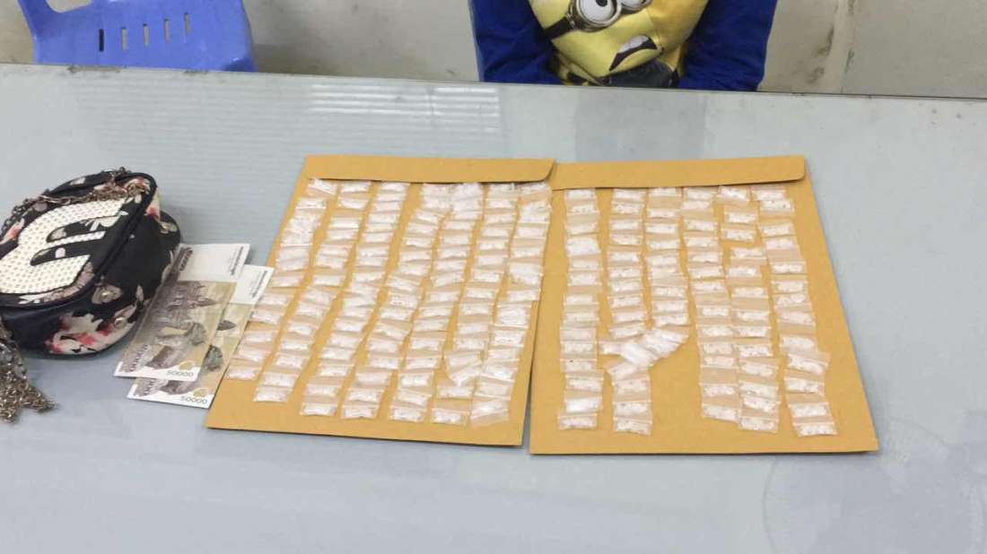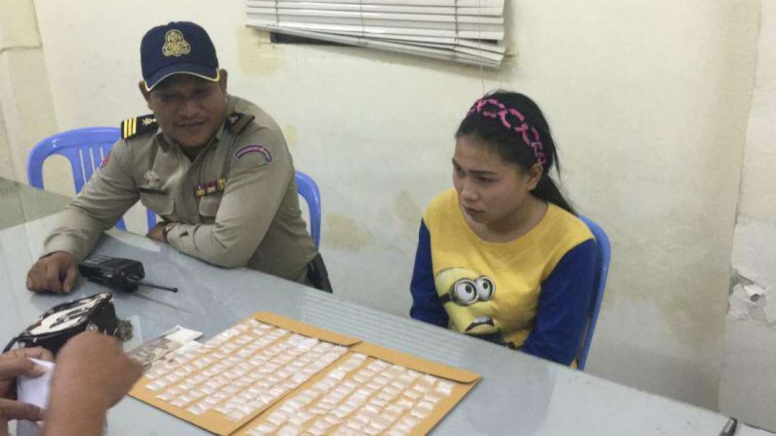 រាជធានីភ្នំពេញ ៖ នារីជាមុខសញ្ញាចែកចែកគ្រឿងញឿនដ៏សកម្មម្នាក់ ត្រូវបានកម្លាំងនគរបាល នៃអធិការដ្ឋានខណ្ឌដូនពេញ សហការជាមួយសមត្ថកិច្ចប៉ុស្តិ៍ស្រះចក ធ្វើការឃាត់ខ្លួន បានភ្លាមៗ នៅចំណុច ផ្លូវរ៉ារទេះភ្លើង ស្ថិតក្នុងភូមិ៣ សង្កាត់ស្រះចក ខណ្ឌដូនពេញ កាលពីវេលាម៉ោង ១៧ និង ៣០នាទីល្ងាចថ្ងៃទី២០ ខែមករា ឆ្នាំ២០១៥ បន្ទាប់ពីជនសង្ស័យរូបនេះកំពុងឈរធ្វើសកម្មភាពចែកចាយលើដងផ្លូវសាធារណៈ ។ នារីជាជនសង្ស័យមានឈ្មោះ លឹម សុភាព អាយុ១៩ មុខរបរមិនពិតប្រាកដ បច្ចុប្បន្នមានទីលំនៅ ផ្ទះជួល ផ្លូវរទេះភ្លើង ក្នុងភូមិ៣ សង្កាត់ស្រះចក ខណ្ឌដូនពេញ មន្ត្រីនគរបាល អោយដឹងថា មុនឈានដល់ការចាប់ខ្លួនជនសង្ស័យរូបនេះ គឺកម្លាំងសមត្ថកិច្ច នៃអធិការដ្ឋាននគរបាលខណ្ឌដូនពេញ សហការជាមួយកម្លាំងនគរបាលប៉ុស្តិ៍ស្រះចក បានចុះល្បាតពួនស្ទាក់ ក្នុងមូលដ្ឋាន ដើម្បីការពារសន្តិសុខសុវត្ថិភាពជូនប្រជាពលរដ្ឋ ក៏ដូចជាទប់ស្កាត់បទល្មើសលួច ឆក់ ប្លន់កុំអោយកើតមាន ។ លុះល្បាតមកដល់ចំណុច ផ្លូវរទេះភ្លើងខាងលើ ស្រាប់តែ ប្រទះឃើញនារីជាជនសង្ស័យកំពុងឈរអើតលើមៗ តែម្នាក់ឯងនៅលើដងផ្លូវ ដោយមានស្ពាយកាបូបដៃជាប់ខ្លួន ។ ដោយមើលទៅហាក់មានការសង្ស័យ សមត្ថកិច្ច ក៏បានហៅរកគេអោយឈប់រួច សុំធ្វើការឆែកឆេរកាបូបស្ពាយដៃ ក៏ស្រាប់តែប្រទះឃើញថ្នាំញៀនមួយចំនួនធំ ទើបសម្រេចឃាត់ខ្លួនភ្លាមៗ យកទៅកាន់ប៉ុស្តិ៍នគរបាលរដ្ឋបាលស្រះចក ដើម្បីធ្វើការសាកសួរនាំបន្ថែម ។ មន្ត្រីសមត្ថកិច្ចបន្តថា ក្រោយការឃាត់ខ្លួន សមត្ថកិច្ចបានរកឃើញ ថ្នាំញៀនម្សៅក្រាមសថ្លា ដែលហៅថា ម៉ាទឹកក ចំនួន ១៩១ កញ្ចប់តូច និងលុយខ្មែរចំនួន ១០ម៉ឺនរៀលផងដែរ ។ បច្ចុប្បន្ន ជនសង្ស័យ រួមទាំងវត្ថុតាងត្រូវបានបញ្ចូនទៅឃុំខ្លួននៅអធិការដ្ឋាននគរបាលខណ្ឌដូនពេញ រងចាំកសាងសំណុំរឿងបញ្ចូនទៅតុលាការ ចាត់ការទៅតាមផ្លូវច្បាប់ ៕